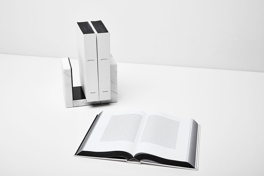 274207281-1 is published by Perish Publishing, Toronto in 2017. It is printed in a limited edition of ten, two artist’s copies and one display copy. This book is designed by Alex Durlak of Perish Publishing and Brian Richer of Castor Design. Each edition is held by a honed Carrara marble bookend with a black reflective face.