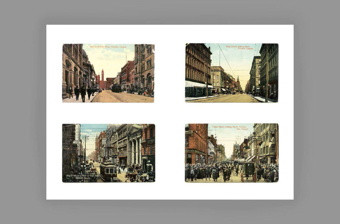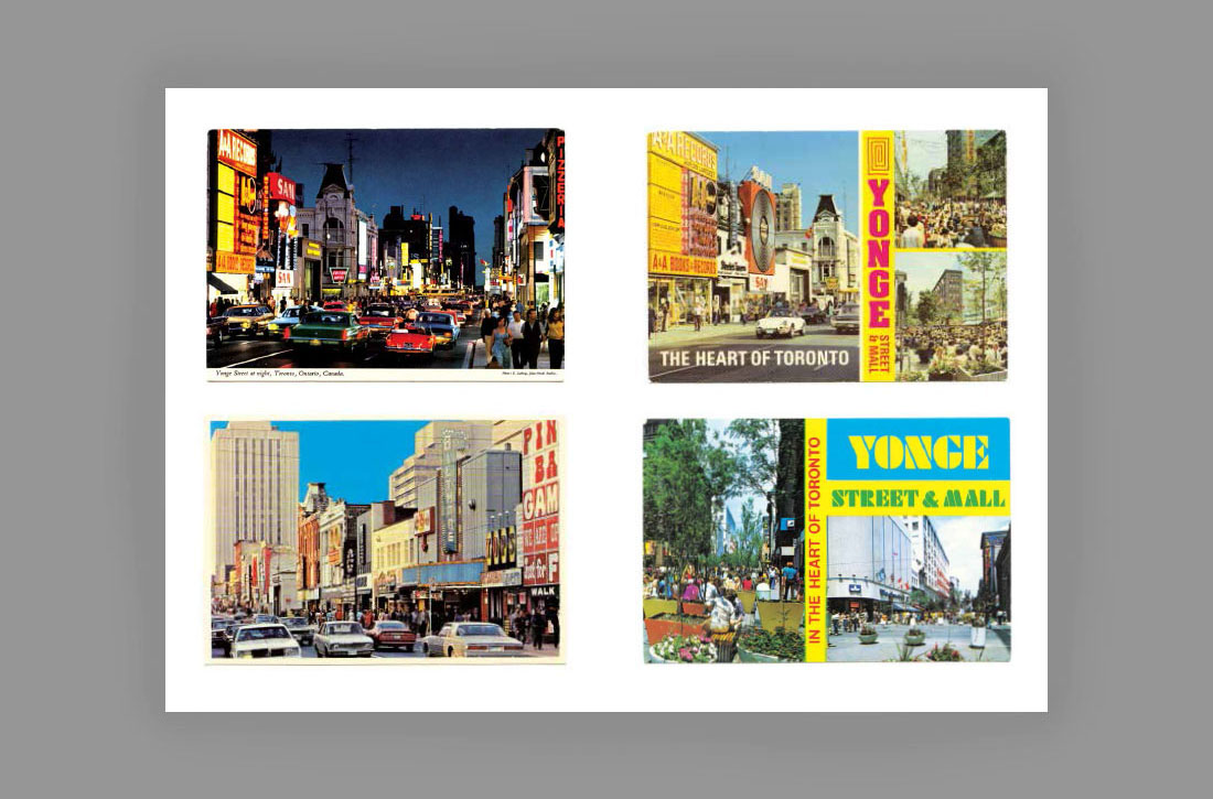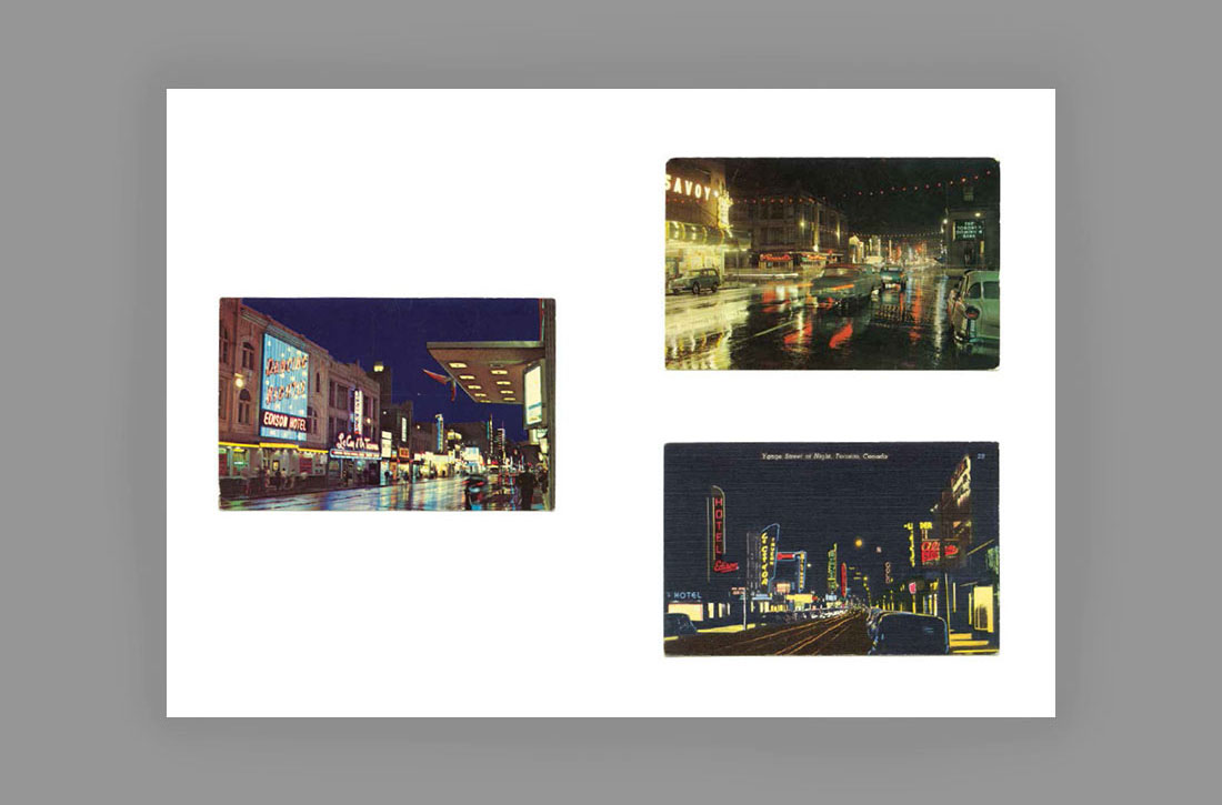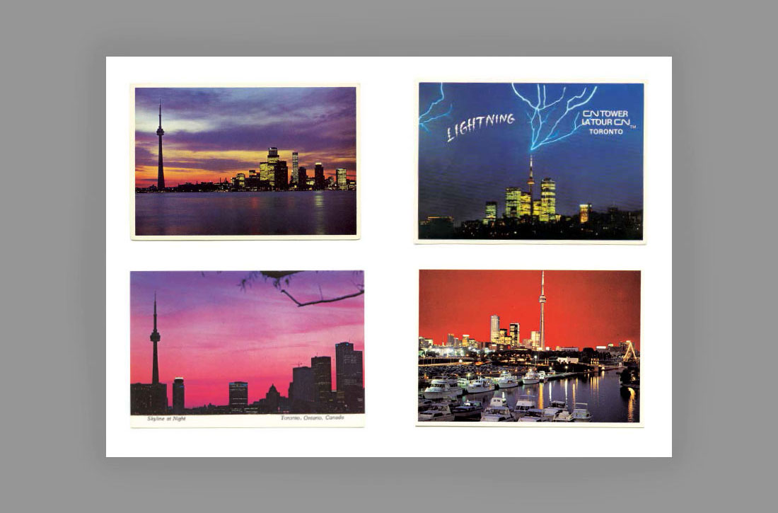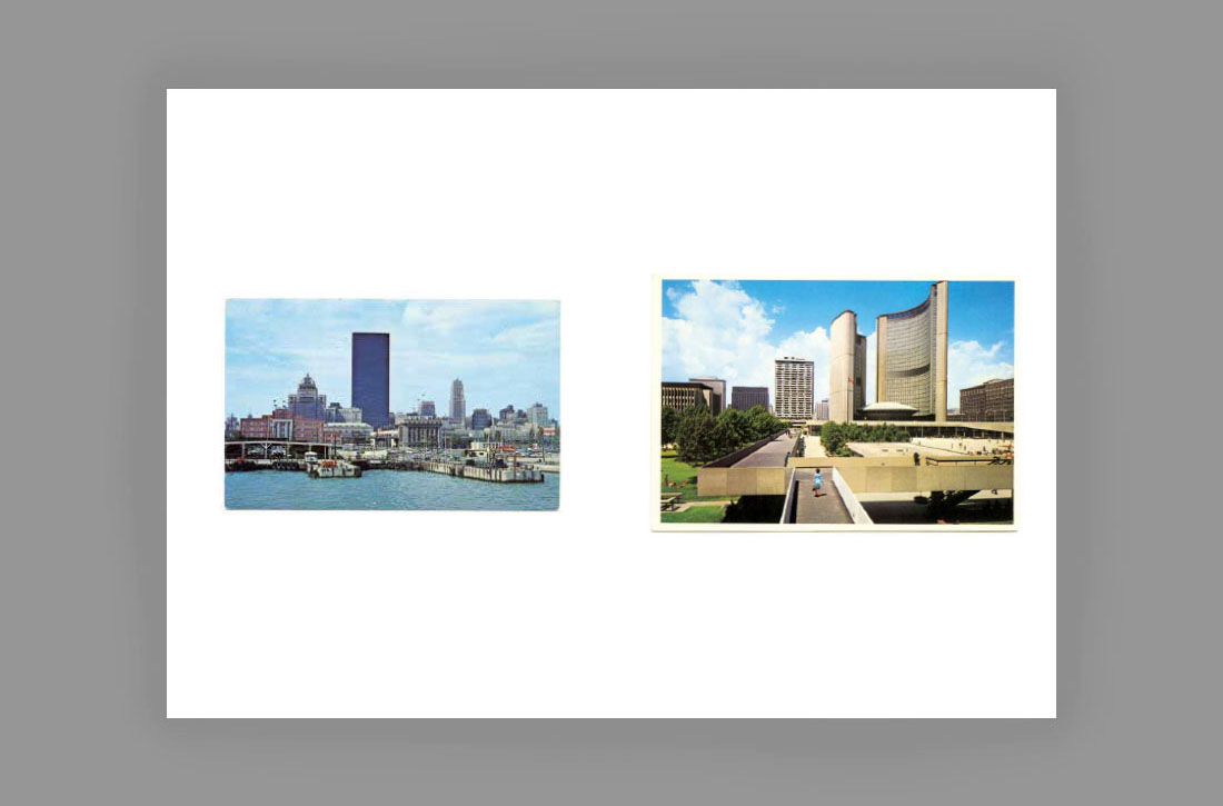 Sightlines emerges from the artist’s extensive archive of postcards chronicling a century of urban development in Toronto. More than a chronicle of Toronto’s visual history, this semi-chronological series of images of Toronto's cityscapes queries the relationship of the city’s culture to its economic life and its forms of self-identity (both projected and submerged).